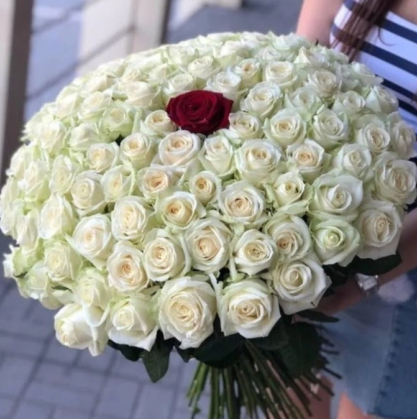 100 белых роз и 1 красная