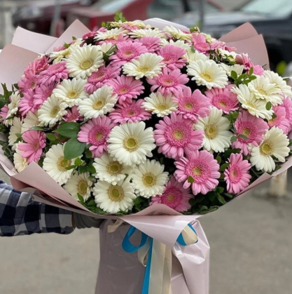 Букет из 101 белой и розовой герберой | Купить в Ницце