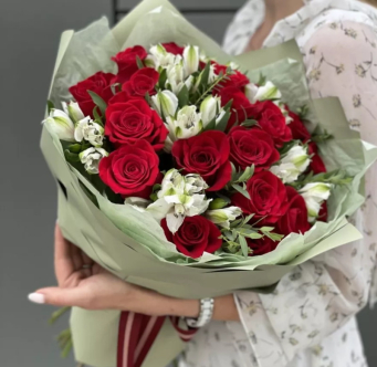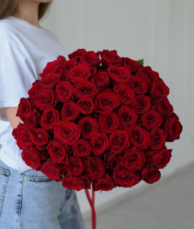 - Розы – классический выбор. Помните, что чем больше букет, тем больше радости он вызовет. Мы рекомендуем алые розы на длинном стебле, как самые красивые;